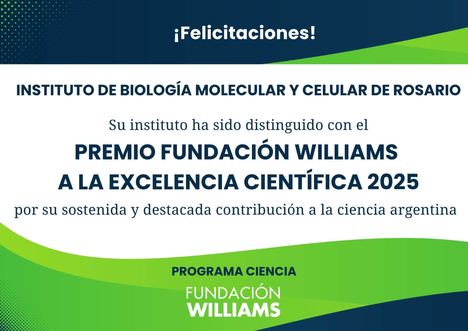 Nos enorgullece anunciar que el Instituto de Biología Molecular y Celular de Rosario (IBR) ha sido distinguido con el Premio Fundación Williams a la Excelencia Científica 2025, un reconocimiento que reafirma nuestro compromiso con la generación de conocimiento de excelencia al servicio del país.